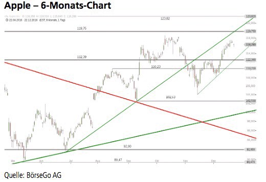 Rückblick: Die Aktien von Apple konnten 2016 die Unterstützung bei 92,00 USD mehrfach testen und dort ab Juni 2016 auch wieder nachhaltig nach oben abprallen. Es folgte ein Anstieg über den mittelfristigen Korrekturtrend, welcher ...