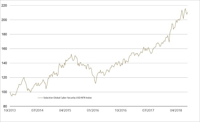 Starker Aufritt: Seit dem Start seiner Berechnung im Oktober 2013 hat sich der Wert des aktuell mit 34 Unternehmen bestückten Solactive Cyber Security USD Net Total Return Index mehr als verdoppelt.