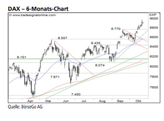Rückblick: Bis Mitte September befand sich der DAX-Index in einer übergeordneten Konsolidierungsphase, die in der Rückschau charttechnisch als bullishes ansteigendes Dreieck klassifiziert werden kann.