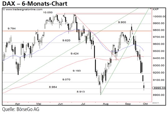 Rückblick: Seit der DAX Index Mitte September an der Hürde bei 9.900 Punkten scheiterte, befindet sich der Wert nahezu im freien Fall.