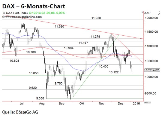 Rückblick: Der DAX Index brach zwar Ende November 2015 kurzfristig über den Widerstand bei 11.278 Punkten aus, konnte sich allerdings nicht über der Marke behaupten und fiel anschliessend..