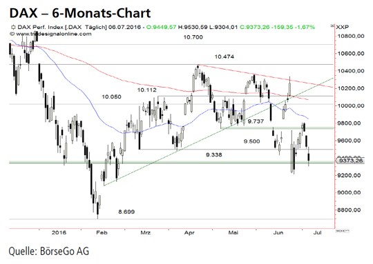 Rückblick: Vor dem Brexit-Referendum führten die Käufer den DAX noch steil nach oben, sodass ein Kaufsignal möglich wurde.