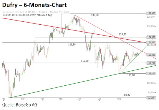 Rückblick: Die Aktien von Dufry markierten im Juni 2014 ein Hoch und befinden sich seitdem in einer Abwärtsbewegung.