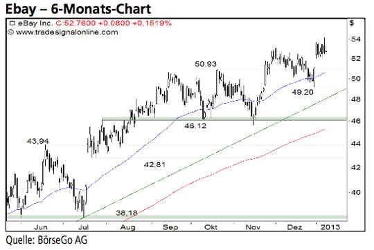 Rückblick: Seit dem Ausbruch aus einer symmetrischen Dreiecksformation im Februar 2012 verschärfte sich der langfristige Aufwärtstrend der Aktien von Ebay. Bereits Ende Februar...