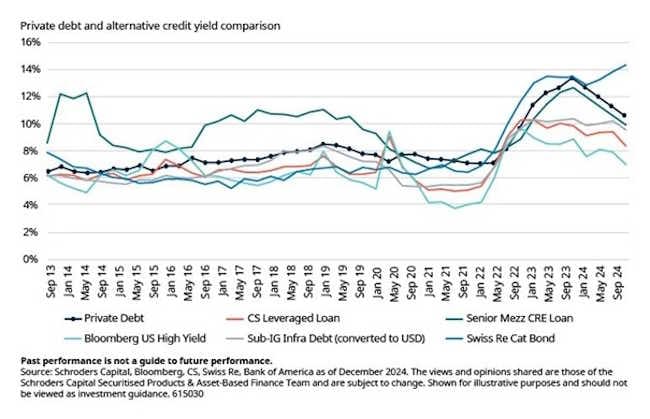 Bei den privaten Schulden gewinnen gezielte Strategien - Immobilienschulden, Infrastrukturschulden, Asset-Backed Loans, versicherungsbezogene Wertpapiere - an Bedeutung. Sie bieten attraktive Renditen und eine bessere Diversifizierung. Immobilienschulden werden durch den Refinanzierungsbedarf angetrieben, während Infrastrukturschulden einen stabilen Cashflow gewährleisten. Insbesondere versicherungsbezogene Wertpapiere zeichnen sich durch ihre Dekorrelation mit der makroökonomischen Konjunktur aus.