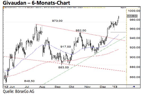 Rückblick: Seit September 2011 befinden sich die Aktien von Givaudan in einem steilen Aufwärtstrend, in dessen Verlauf sie im Juli 2012 an den langfristig...