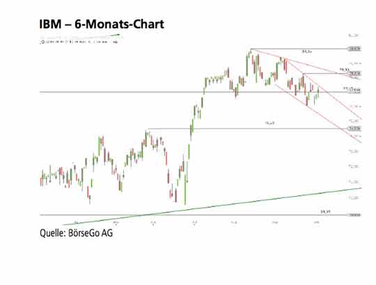 Rückblick: Bereits seit März 2013 geht es bei IBM nach einem Rekordhoch bei 215,90 USD abwärts. Die Notierungen bewegten sich bis zur Unterstützung bei 116,00 USD zurück...