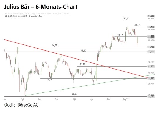 zur 44,78 CHF-Marke wäre bei Julius Bär ein weiterer Anstieg