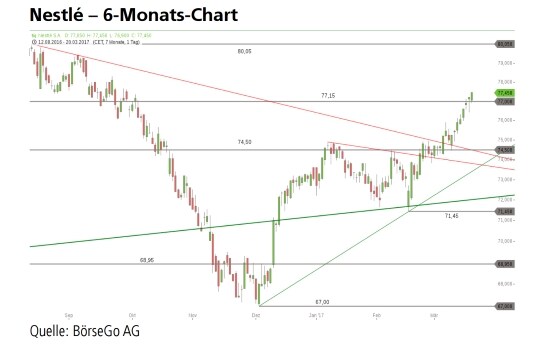 Ausbruchsmarke bei 74,50 CHF möglich. Erst unterhalb dieses