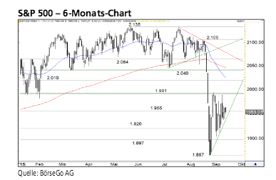 Rückblick: Nachdem der S&P 500 Index Mitte August innerhalb von fünf Handelstagen von 2.103 Punkten bis 1.867 Punkte eingebrochen war, startete dort eine dynamische Erholung.