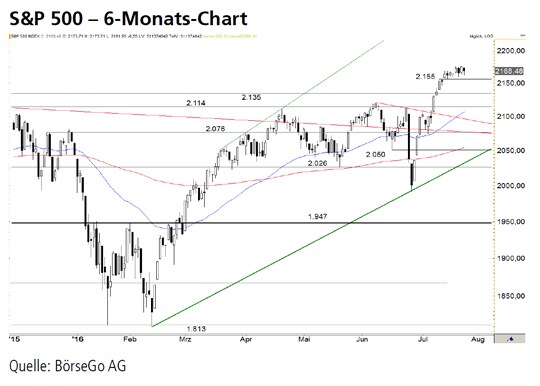 Rückblick: Der S&P 500 Index präsentierte sich in den vergangenen Wochen sehr stark. Nach dem Brexit-Referendum kam es noch zu einem schnellen und starken Rückfall, welcher jedoch auf der 1.991 Punkte-Marke beendet wurde.