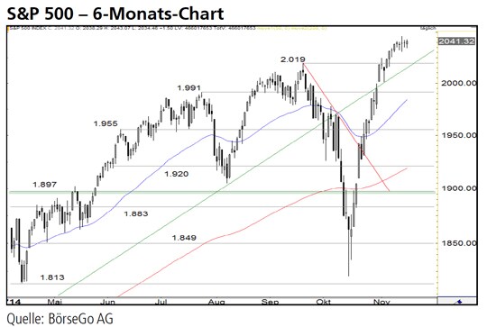 Rückblick: Seit dem Tief von Mitte Oktober bei 1.820 Punkten stieg der S&P 500 Index in einer massiven Aufwärtsbewegung an und machte den vorherigen Einbruch damit vergessen.