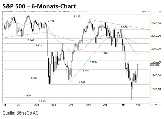 Rückblick: Der S&P 500 Index war zum Jahreswechsel dramatisch eingebrochen und hatte mit einem Ausverkauf bis an die 1.813 Punkte-Marke den gesamten Anstieg von September bis Dezember 2015 neutralisiert.