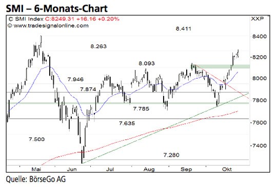 Rückblick: Ausgehend von der markanten Unterstützung bei 7.785 Punkten stieg der SMI Index seit Anfang Oktober an die Oberseite des mittelfristigen...