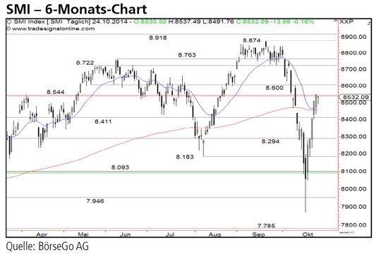 Rückblick: Seit einem Verlaufshoch im September bei 8.874 Punkten befand sich der SMI Index im direkten Anschluss in einem massiven Kursrutsch, der den Wert auf Talfahrt schickte.