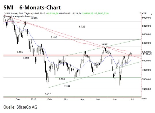 Rückblick: Für den SMI Index ging es in den vergangenen Wochen wieder nach oben. Nach dem Brexit-Referendum scheiterte der Index an der Hürde bei 8.093 Punkten, bevor es zu einem starken Ausverkauf kam.