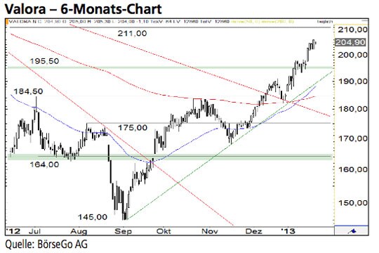 Rückblick: In einer steilen Kaufwelle durchbrachen die Aktien von Valora im September 2012 den Kreuzwiderstand bei 164,00 CHF und beendeten damit...