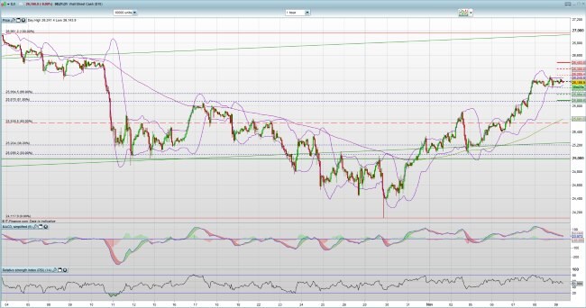Nach den Turbulenzen an den Finanzmärkten seit der letzten Zinssitzung der FED im September hatten Trader gehofft, dass die amerikanische Zentralbank von ihrem Zinspfad abrücken könnte. Die FED behielt jedoch sowohl den Leitzins als auch ihren Ausblick unverändert. Zwar fiel der Dow Jones während der Sitzung kurz konnte sich jedoch schnell wieder erholen und schloss nahezu unverändert. Mit 86% bleibt die Wahrscheinlichkeit einer weiteren Zinserhöhung im Dezember hoch und somit wird der Fokus weiterhin auf die kommenden ökonomischen Indikatoren liegen. Mit Überwinden des Widerstandsbereichs bei 26.000 Punkten wäre charttechnisch nun ein erneuter Versuch ein neues Allzeithoch zu testen möglich, jedoch dürfte nach den Zwischenwahlen für Trump nun wieder das Thema Handelsstreit mit China in den Vordergrund rücken.
