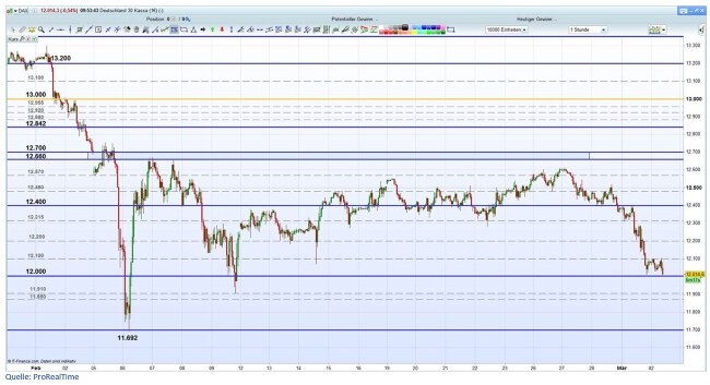 Sollte der DAX die 12.000 Punkte Marke heute nicht halten können, dürfte ein kurzfristiger Test der Unterstützungszone bei 11.850/11.910 Punkten anstehen. Je nach Ausgang der Wahlen am Sonntag, könnte der DAX am Montag mit einem Gap reagieren.