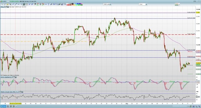 Derzeit handelt der Deutsche Leitindex über seinem heutigen Pivot Punkt was eine positive Tagestendenz andeutet. Jedoch müsste der Index erst den Widerstandsbereich bei 12.400/12.460 Punkten überwinden um das aktuelle Chartbild zu verbessern. Nach unten steht weiterhin die wichtige Unterstützung bei 12.120 Punkten im Fokus.