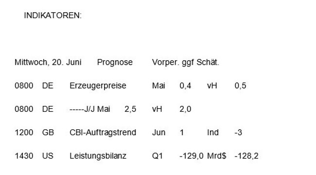 Zusätzlich zu den von Reuters unten aufgeführten Indikatoren sollte heute auch auf die Verkäufe bestehender Häuser in den USA um 16 Uhr MEZ sowie die US-Rohöllagerbestände um 16:30 Uhr MEZ sowie diverse Reden von Mitgliedern der EZB und der FED beachtet werden.