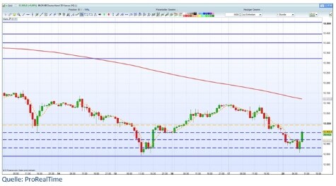 Die kurzfristige Unterstützung liegt bei 12.840 Punkten. Nach oben müsste der DAX zunächst die Marke von 13.000 Punkten zurückerobern bevor er Anlauf auf 13.100 Punkte nehmen könnte.