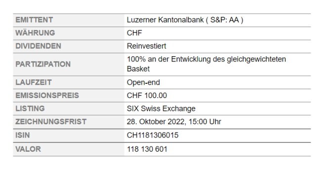 Das Tracker-Zertifikat auf den Clean Energy Basket ist bis zum 28.10.2022 in Zeichnung und kann einfach über die Hausbank telefonisch beim Berater oder einem Online-Broker wie die FlowBank gezeichnet werden. Weitere Informationen sind beim Emittenten Luzerner Kantonalbank erhältlich.