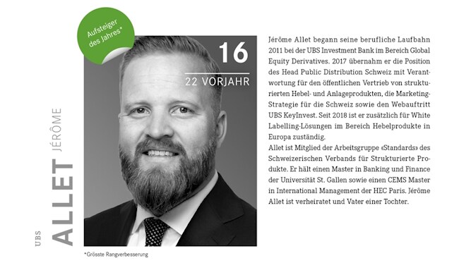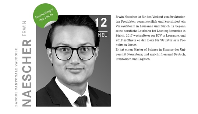 Aufsteiger des Jahres der «30 wichtigsten Köpfe im Schweizer Markt für Strukturierte Produkte»