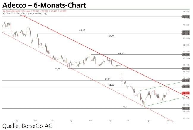 Adecco jedoch gelingen, die 51,50 CHF-Marke klar zu