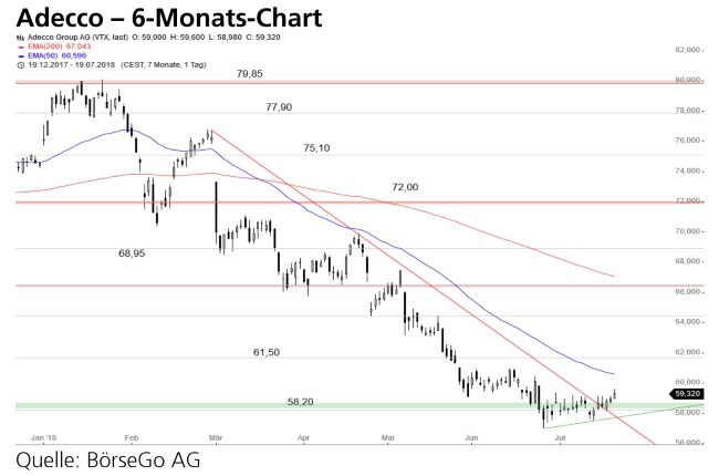 dagegen erneut unter die 58,20 CHF-Marke wäre die Chance auf