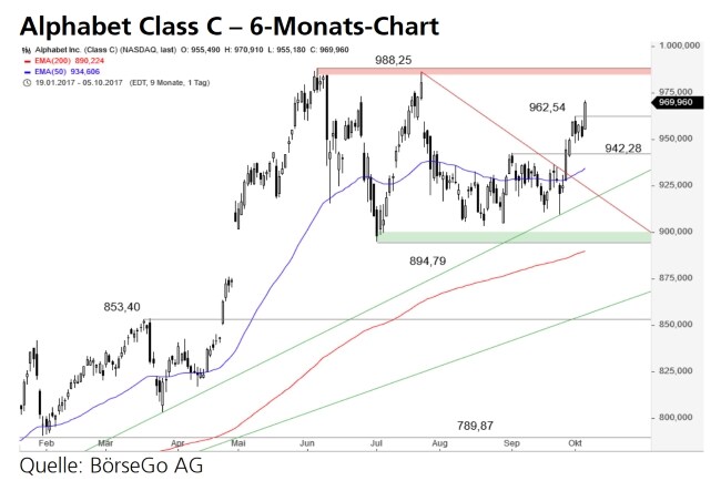 Sollten die Aktien von Alphabet dennoch über 988,25 USD