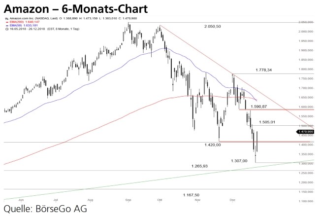 Rückblick: Noch Anfang September dieses Jahres waren die Aktien von Amazon auf ein neues Allzeithoch bei 2.050,00 USD gestiegen, konnten die Marke jedoch in einem zweiten Aufwärtsimpuls im Oktober nicht überwinden.