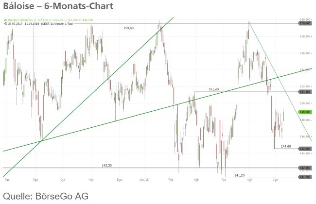 Ausblick: Innerhalb der mittelfristigen Handelsspanne, zwischen der 142,30 CHF-Marke und der 159,60 CHF-Marke, kann Báloise derzeit relativ neutral bewertet werden. Erst ein Ausbruch daraus dürfte eine grössere Richtungsentscheidung nach sich ziehen. Trendbestätigend wäre ein Ausbruch auf der Oberseite zu favorisieren. Die Long-Szenarien: Die an-gelaufene Erholung besitzt zunächst noch weiteren Spielraum bis zur 151,40 CHF-Marke, bevor dort auch der steile Ab-wärtstrend der Vorwochen belasten dürfte. Gelingt der Ausbruch über dieses Niveau, dürfte sich der Weg innerhalb der Handels-spanne wieder bis zur 159,60 CHF-Marke öffnen. Die Bullen könnten auf diesem Niveau kurzfristig im Vorteil sein. Schafft der Kursverlauf auch einen klaren Ausbruch über die 160,00 CHF-Marke, wäre eine mittelfristige Aufwärtswelle bis zur 180,00 CHF-Marke möglich. Die Short-Szenarien: Unterhalb der 151,40 CHF-Marke könnte die Abwärtsbewegung jederzeit wieder auf-genommen werden. Geht es anschliessend unter die 144,60 CHF-Marke zurück, würde sich der Weg bis zur Unterkante der Handelsspanne bei 142,30 CHF öffnen. Abgaben unter die 141,20 CHF-Marke dürften auch den Weg bis zur 136,30 CHF-Marke frei werden lassen.