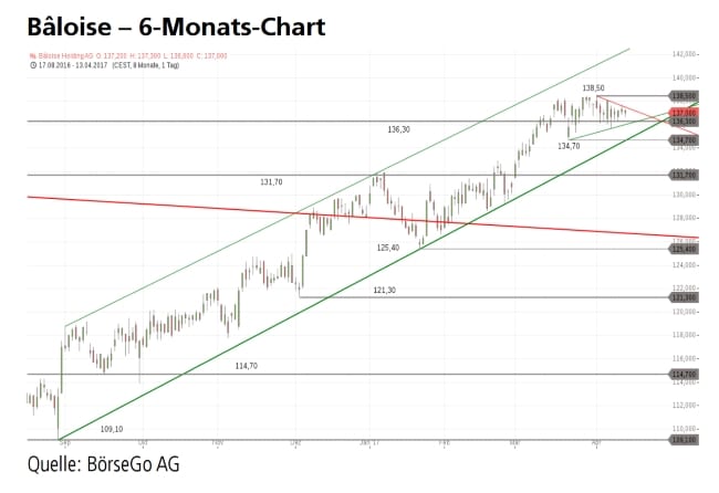 Die Konsolidierung der vergangenen Wochen stellt eine bullishe Formationslage dar, welche bald steigende Notierungen nach sich ziehen könnte. Sollte sich jedoch eine kleine Verkaufswelle anschliessen, dürfte dies mittelfristig stärkere Abgaben nach sich ziehen. Die Long-Szenarien: Ein Ausbruch aus dem Abwärtstrend der Vortage, welcher derzeit bei 137,50 CHF verläuft, könnte einen Anstieg zum Hoch bei 138,50 CHF nach sich ziehen. Nach Auflösung der Konsolidierung der vergangenen Wochen ist eine Fortsetzung der Rally auf neue Hochs möglich, sodass innerhalb des mehrmonatigen Trendkanals die bei 142,50 CHF liegende Oberkante erreichbar werden könnte. Davon ausgehend bietet sich die Möglichkeit einer Zwischenkorrektur. Sollte es dem Wert jedoch gelingen, über die obere Trendbegrenzung auszubrechen, wäre die 150,00 CHF-Marke erreichbar. Die ShortSzenarien: Ein Rückfall aus dem Dreieck nach unten, unter die 136,00 CHF-Marke, könnte einen Test des bei 134,70 CHF liegenden mittelfristigen Aufwärtstrends nach sich ziehen. Wird diese wichtige Kreuzunterstützung durchbrochen, dürfte eine umfassendere Zwischenkorrektur folgen. In diesem Fall könnte es bis zum gebrochenen mittelfristigen Abwärtstrend bei 126,00 CHF zurückgehen, mit einem Zwischenziel an der 131,70 CHF-Marke.