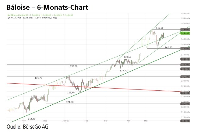 möglich wäre. Schaffen es die Bullen auch über die 149,80 CHF-Marke hinaus, könnte die Oberkante des Trendkanals
