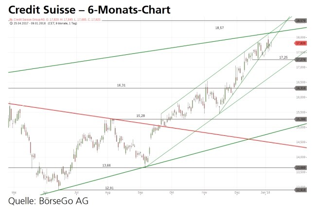 Spielraum bis zur oberen Trendbegrenzung bei 18,15 CHF.