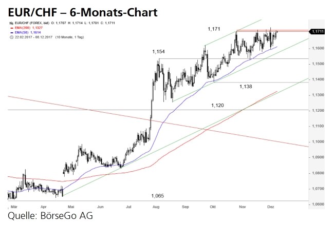 wieder die Chance, die 1,171 CHF-Marke im Rahmen einer