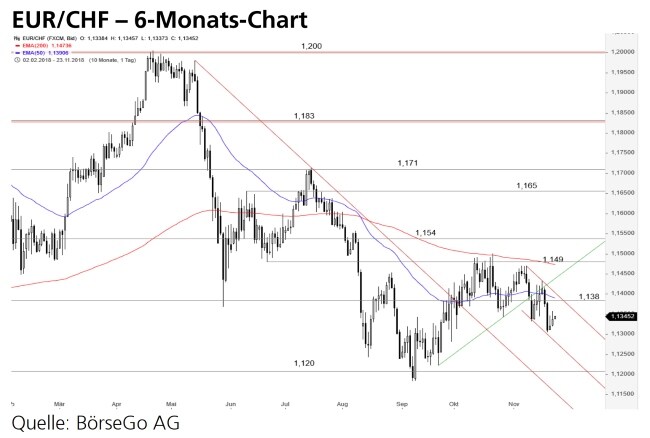 Richtung der 1,138 CHF-Marke steigen. Wird die Unterstützung