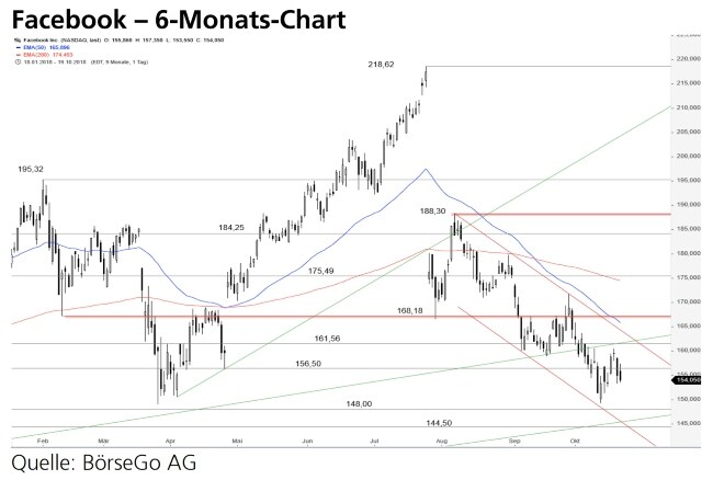 Rückblick: Die Aktien von Facebook beendeten ihren fulminanten Anstieg im Juli dieses Jahres mit einem veritablen Crash: Binnen eines Tages verlor das Unternehmen rund 20% seines Börsenwertes und konnte sich erst nach einem Tief an der Unterstützung bei 168,18 USD leicht erholen.