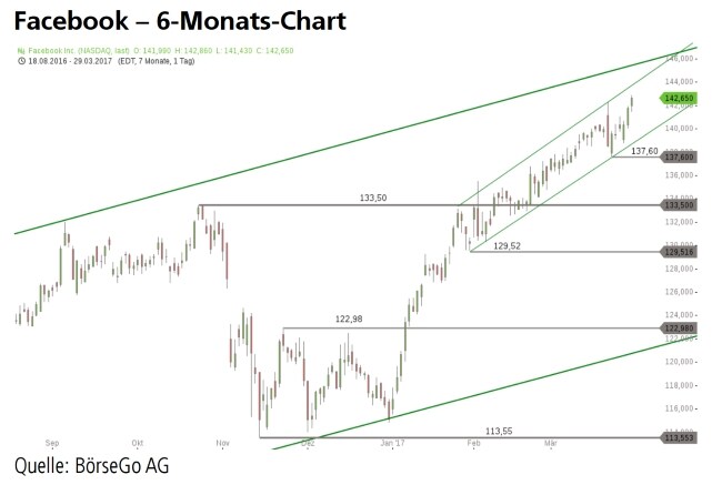 Facebook aus dem Aufwärtstrendkanal der Vorwochen nach