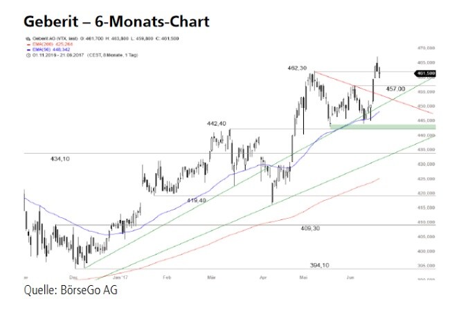 Im Rahmen eines massiven Aufwärtstrends überschritten die Aktien von Geberit im März dieses Jahres erstmals die Rekordmarke bei 434,10 CHF, die im Vorjahr erreicht wurde.