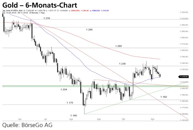 dürfte Gold bis 1.236 USD steigen. Wird der Widerstand