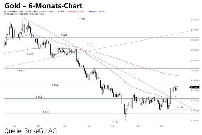 einem nachhaltigen Ausbruch über die 1.232 USD-Marke hätte Gold die nächste markante Hürde überwunden. In der