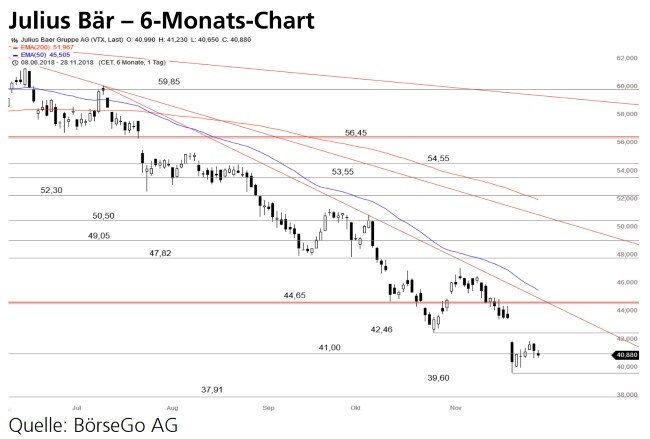 rechnen, dass die Aktien von Julius Bär den Abwärtstrend mit unverminderter Dynamik bis 39,60 CHF fortsetzen und die Marke