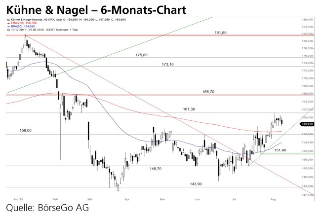 Rückblick: Mit einem grossen bearishen Doppelhoch an der 181,80 CHF-Marke endete im Januar dieses Jahres eine mittelfristige Rally bei den Aktien von Kühne & Nagel.