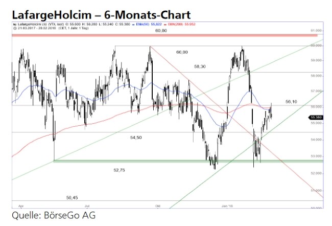 Nachdem sich bei den Aktien von LafargeHolcimin den Sommermonaten des vergangenen Jahres an der60,00 CHF-Marke ein bearishes Doppelhoch...