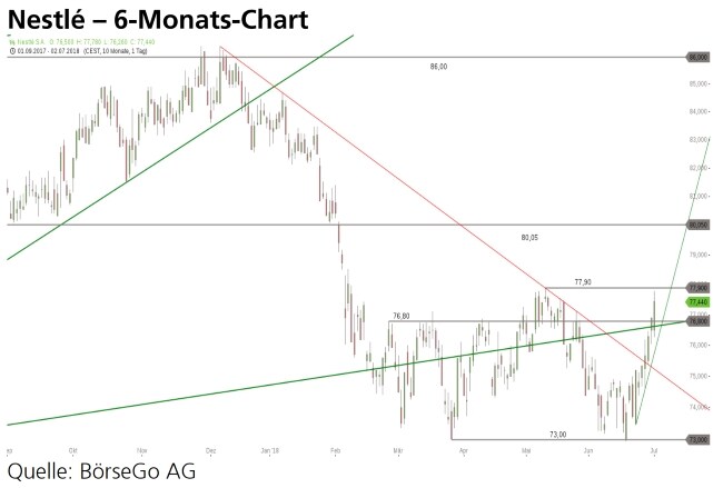 werden. Auf Basis des Doppelbodens würde sich weiterer Spielraum bis in den Bereich 83,00 CHF bieten. Wenn es Nestlé