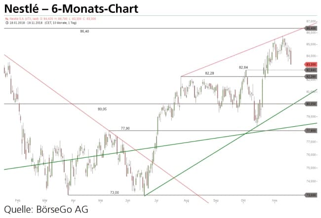 mehrmonatigen Trendkanals bis zur 86,40 CHF-Marke gegeben.