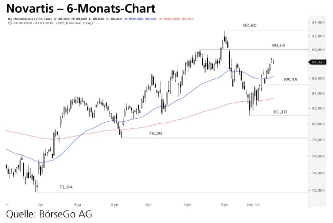 Tagen kein Ausbruch über 90,00 CHF, könnte ein Rückgang