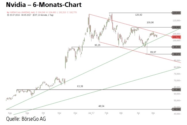 Rückblick: Für die Aktien von Nvidia ging es in den vergangenen Jahren zunächst moderat und stabil aufwärts, bevor ab Februar 2016 oberhalb der 26,17 USD-Marke eine steile Rally begann.